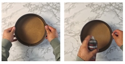 - Preheat the oven to 160℃ (320℉). Line the base of the cake tin with a piece of greaseproof paper and lightly grease the walls of the cake tin with cooking spray or butter.