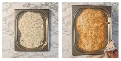 - Evenly spread desiccated coconut onto a baking tray and toast in the preheated oven for 3-5 minutes until golden brown. Leave to completely cool.
