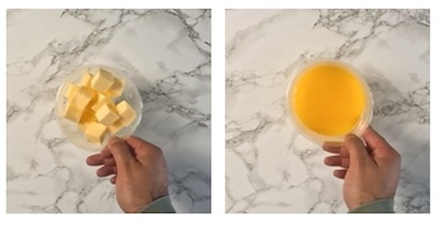 - In 30 second bursts melt the butter in the microwave.