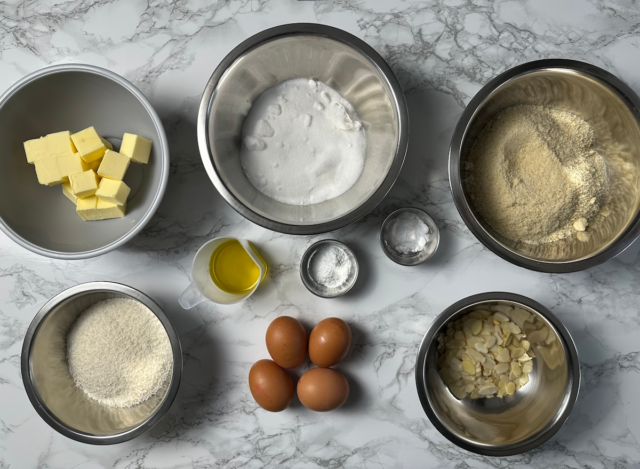 - Baking Powder: The chemical leavening agent. It reacts during baking to produce carbon dioxide, giving the heavy almond-based batter the lift required to achieve a light and airy crumb structure.