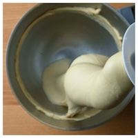 - Turn the mixer to high and continue kneading for approximately 5 minutes, or until the dough is elastic and "cleans" the sides of the bowl completely.