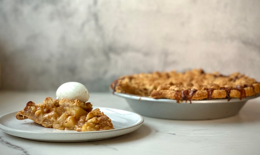 Salted Caramel Apple Streusel Pie