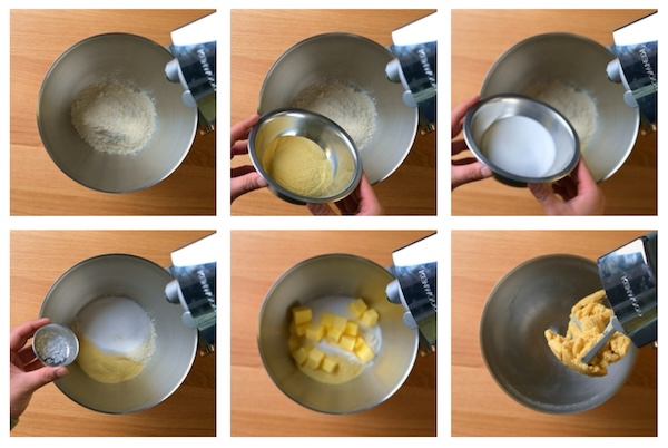 2. Into a stand mixer fitted with a paddle attachment place all the ingredients into the bowl and mix. Stop mixing as soon as a dough has formed.