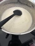 5. Pour the tempered egg yolk mixture back into the pan with the remaining liquid on a low/medium heat. Keep stirring, scraping the bottom and the sides of the pan until the mix has reached 83℃ (181℉)5